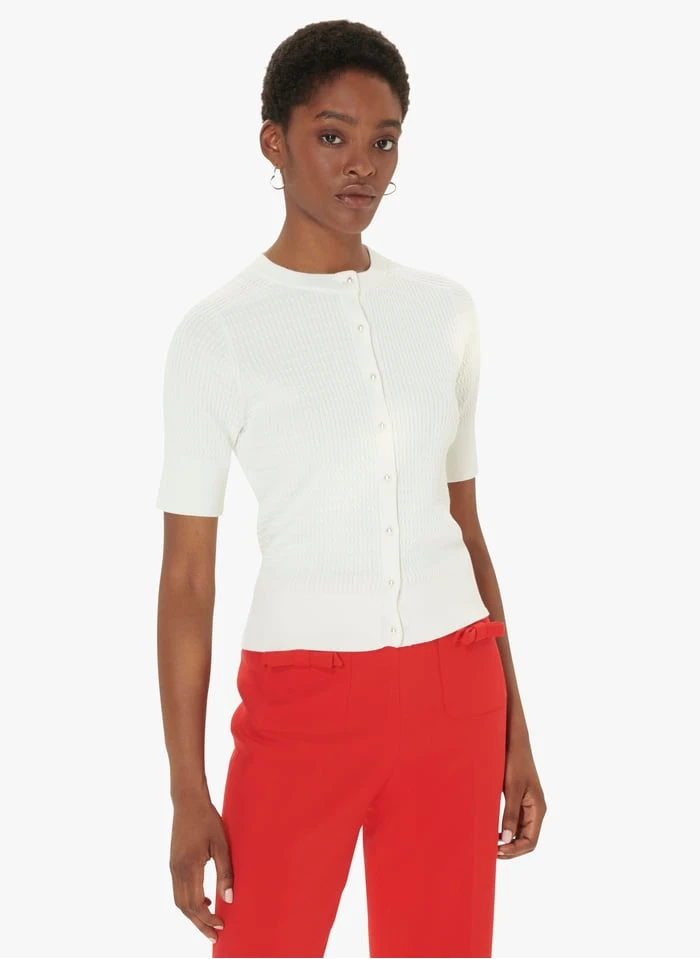 Round-neck extra fine cotton cardigan by Tara Jarmon for Women.