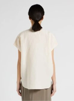 Tara Jarmon TIERRI – Blue Straight Top With Button-down Collar