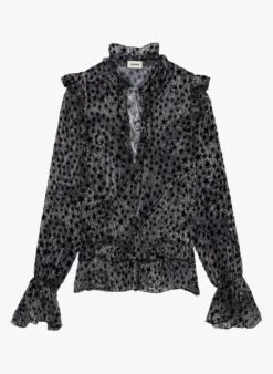 Zadig & Voltaire TUYA BURNOUT STARS – Black Printed Floaty Blouse