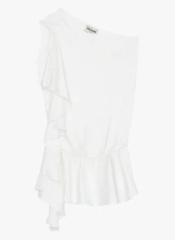 Zadig & Voltaire TIC – White Sleeveless Draped Top With Asymmetric Neckline