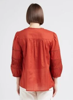 MAISON 123 TALE – Orange Loose-fit Embroidered Cotton V-neck Blouse