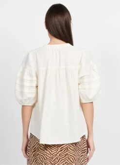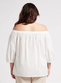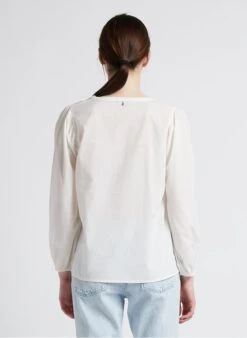 ONE STEP White Cotton Blouse With V-neck And Embroidered Insets