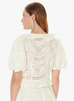 STELLA FOREST KATE – White Round-neck Cotton Top With Openwork Embroidery