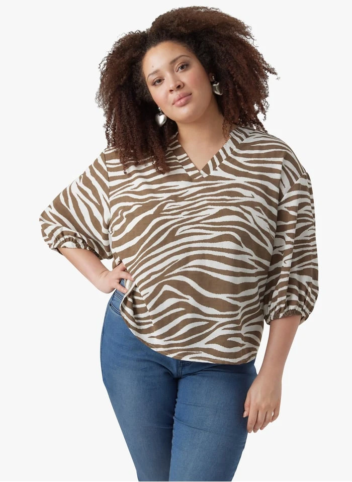 Striped V-neck blouse by VERO MODA CURVE for Women.