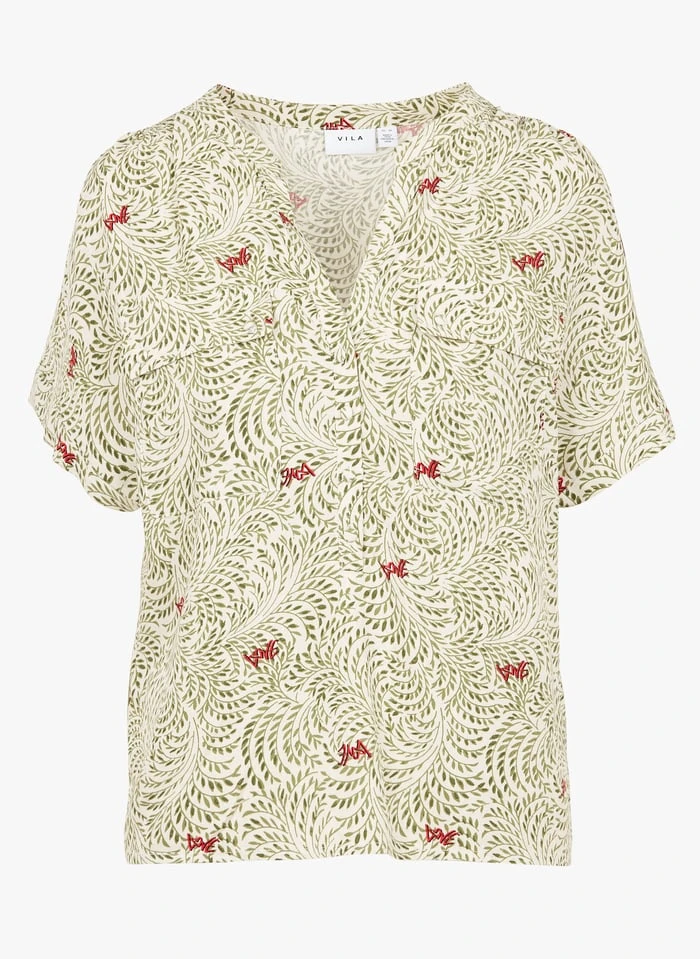 Printed V-neck blouse by Vila for Women.